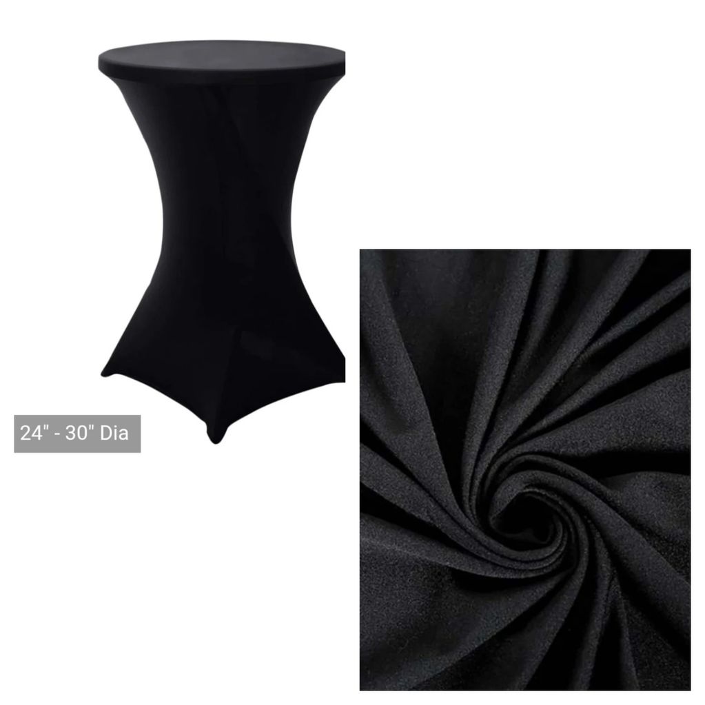 Black Spandex Cocktail Tablecloth 24' x 30' Diameter. Rental Price $10.00